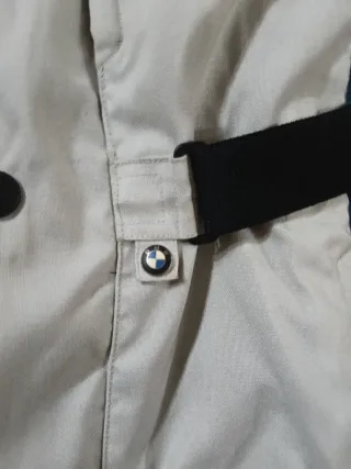 Chaqueta de moto de la marca BMW Motorrad en perfecto estado. - Color azul marino y detalles en beige. - Cierre con cremallera y botones. - Cuello alto con cierre de velcro. - Logo de BMW en los botones.