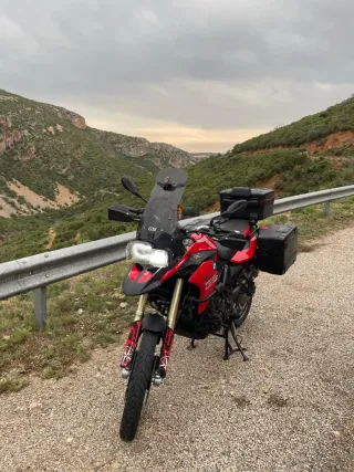 Moto BMW F800GS 2015 en excelente estado. - Moto muy mimada, motor Rotax (el bueno), todas las revisiones selladas en servicio oficial. -Faro delantero led y antinieblas homologados y metidos en ficha, scottoiler para engrase automático, cúpula alta con toda la estetica de la adventure, protecciones, etc. Mejor ver en persona. -Suspension inteligente ESA con 3 modos de ajuste conducción, ABS, control tracción, puños calefactables, escape Akrapovic original, maletas Vario BMW Motorrad. -La moto está a capricho, no hace falta hacerle nada, solo salir a disfrutar de ella. -74.000km, se puede decir que está en rodaje ese motor.