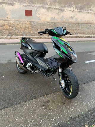 Yamaha Aerox -MOTOR 1:completamente de serie salvo escape yasuni r -MOTOR 2:cilindro tpr 86,carter encarado para tpr,escape Matías racing con bala lila,cigüeñal tpr c44,variador malossi gordo,correa polini,embrague malossi deltaclouch,campana motorforce desarrollos primarios tpr,caja de láminas tpr,rotor mvt naranja,carburador 30rdc. MOTO:2 años de itv (doy todo para pasarla) pastillas en perfecto estado neumáticos en perfecto estado,funciona todo correctamente,doy tambien un juego de pastas de la edición Valentino rossi. -Se puede entregar tambien con 1 solo motor hablando el precio SOLO SE CAMBIAN POR MOTO DE MARCHAS