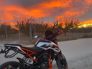 Moto KTM Duke 125 en color blanco y naranja. Un diseño deportivo y ágil. Se vende por cambio de cilindrada -Estilo naked. -Transmisión manual. -Visera negra y tambien se entrega visera normal -Portamatriculas corto. -Puños KTM. -Defensas de motor. -Porta Maletas Laterales. -Maletas Laterales. -No lleva catalizador pero se entregan todas las piezas de la moto 2019 35000km Mas info preguntar por mensaje