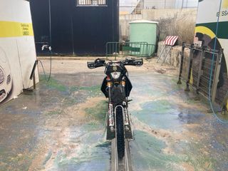 Moto de cross KTM en colores negro y naranja, muy cuidada ,itv octubre 2027 .juego completo de amortización delantera con sus Tijas .algo de repuesto y para pasar itv menos escape original.escape akrapovic.