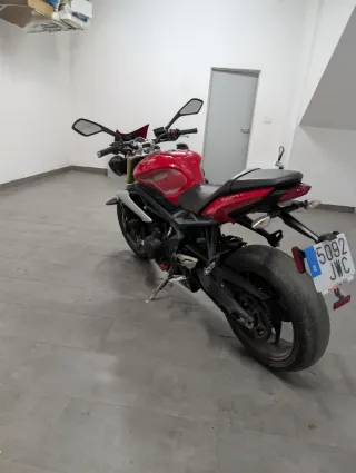 OPORTUNIDAD Triumph street triple del año 2014, el estado de la moto es como nueva 9/10, está impecable, sin desperfectos o desgastes. Suspensión trasera nueva, suspensión delantera con mantenimiento recién hecho, kit de transmisión nuevo. Todos sus mantenimientos al día. Está limitada en papeles para el carnet A2. Es perfecta para fines de semana y rutas. Se puede ver sin compromiso.