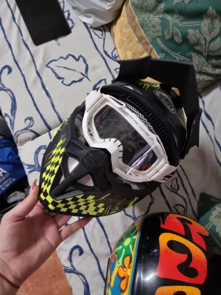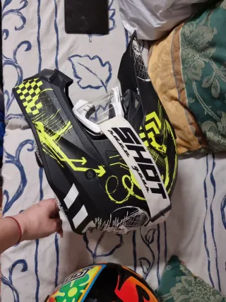 Casco de cross de la marca Shot, ideal para motocross o enduro. Incluye gafas. - Diseño llamativo en negro y amarillo. - Cierre de seguridad. - Visera protectora.