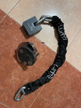 Vendo Cadena antirrobo de Luma SOLIDO 3818 con cuerpo de acero endurecido de 1 metro, candado con sus 2 llaves y el soporte luma de suelo, precio negociable.