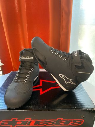 Botas de moto Alpinestars NC en color negro, talla 39. - Cierre con velcro y cordones. - Diseño deportivo y protector.