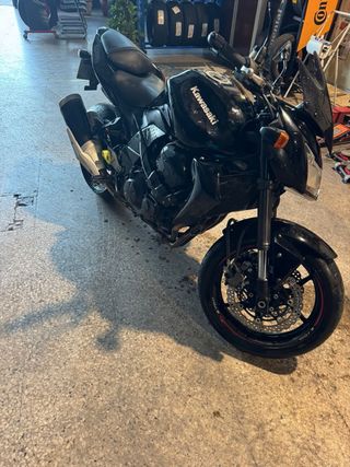 Moto Kawasaki de estilo naked en color negro. Ideal para disfrutar de la carretera. - Transmisión manual. - Diseño deportivo y ágil. - 50.000km