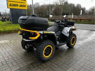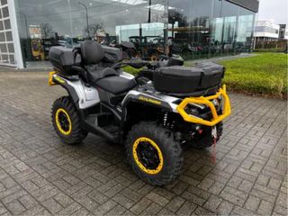 Vehículo todoterreno Can-am Outlander 1000 con un diseño llamativo. KM: 1100km, revisión recién hecha, posibilidad de matriculación - Color principal plateado con detalles en amarillo. - Asiento doble para conductor y pasajero. - Potente motor de 1000cc que genera 91 caballos - Extras: Cajas de almacenamiento delantera y trasera, asiento para acompañante, luces led y cabestrante
