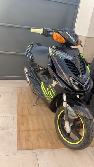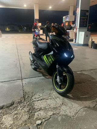 Yamaha Aerox ESTA NUEVA, todo el mantenimiento echo al dia - Diseño deportivo y moderno. - Top negro 50cc - Variador malossi - Carburador 17’5 dellorto - Suspensión de competición - Escape yasuni r homologado - Bifaro delantero - ITV hasta 2027 Se entrega: Espejo derecho, porta matriculas de casa, faro delantero de casa, cilindro 50cc de casa, variador de casa