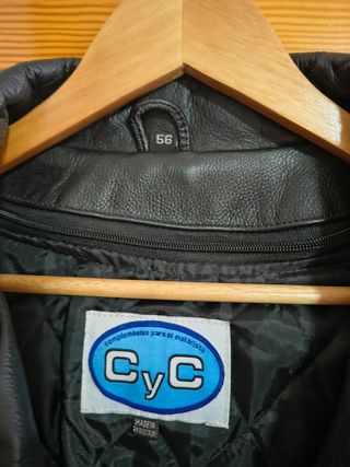 Chaqueta de cuero para moto con protecciones, en perfecto estado. Talla 56 - Talla grande. - Color negro. - Cierre de cremallera. - Bolsillos múltiples.