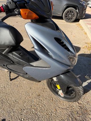 Yamaha Aerox en color gris metalizado. - Diseño deportivo. - Guardabarros delantero con acabado en fibra de carbono. - Faro delantero con doble óptica. Las pastas de carbono , manetas de carbono faro trasero de carbono etc .. Lleva un top rosa , la biela y el cigüeñal top nuevo, bomba de agua top , correa malosii , embrague malossi , variador polini , rodillos malossi , las ruedas michelin las dos con un 90% , pastillas de freno malossi , amortiguador de atrás malossi , marcador koso , caja de láminas Vforce 3 . Precio algo negociable , mejor ver y probar . Mas información: 671157362 Moto echa a capricho desde 0 .