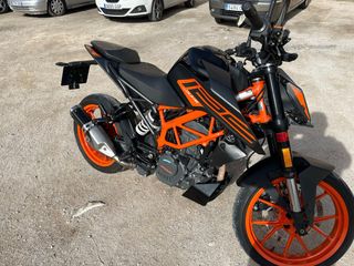 Moto KTM DUKE 125cc en llamativo diseño naranja y negro. - Chasis tubular de acero. - Diseño deportivo y ágil. - Ruedas de aleación. Está en muy buen estado, comprada de segunda mano con garantía en vigor hasta el 25 de marzo de 2026 por un concesionario, ITV recién pasada hasta 2027, doy la opción de llevar tubo de escape MIVV y porta matrícula homologados por 200€ más Total 3500€ pero es solo opcional precio de la moto son 3300€