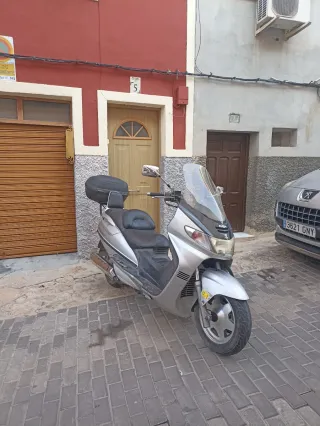Suzuki Burgman 400 en color plata. - Maletero trasero. - Parabrisas alto. - 52 mil Km. - Ruedas nuevas. - Funcionando al día.
