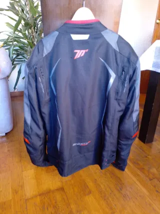 Chaqueta de moto para hombre, ideal para el verano. Talla M Tiene ligera rascada en manga izquierda por roce con el tubo de escape - Diseño ligero y transpirable. - Cuello redondo. - Cierre de cremallera frontal. Protección en hombros y codos