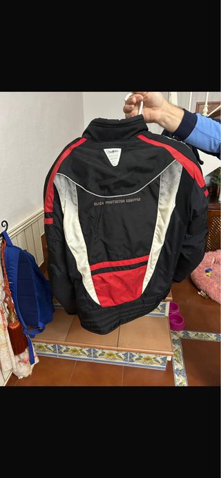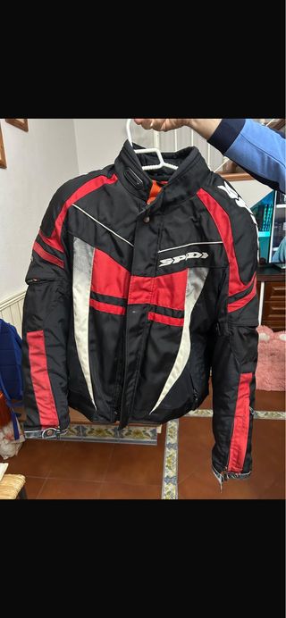 Conjunto de chaqueta y pantalón de cordura SPIDI talla L - Chaqueta negra con detalles en rojo y blanco. - Tejido de cordura resistente. - Cierre frontal con cremallera y solapa. - Puños ajustables. - Paneles de ventilación en malla. Algo negociable