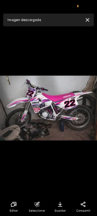 Moto Yamaha YZ 125cc de 2 tiempos del año 1991. Presenta un diseño llamativo con detalles en blanco, rosa y morado. - Número de competición 22. - Llantas DID. - Horquillas KYB. - Neumáticos delanteros y traseros.