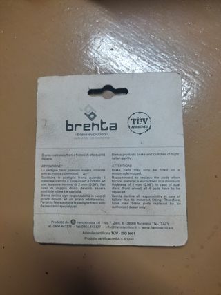 Pastillas de freno Brenta para moto, ciclomotor nuevas sin abrir. Son dos pastillas en perfecto estado. Se entrega en mano no lo envío. - Marca: Brenta - Modelo: FT 3015 - Fabricadas en Italia - Aprobación TÜV