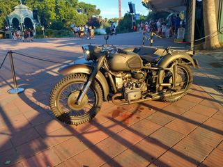 Vehículo clásico con sidecar, ideal para darle un toque especial a tu evento. - Moto con sidecar. - Color verde militar. karr kitt eventos 672392233 649831515