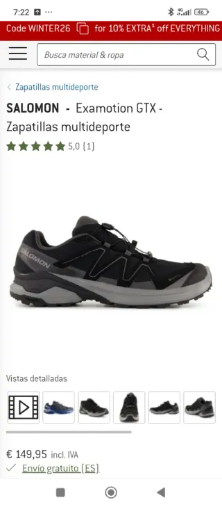 Zapatillas de trail Salomon con tecnología Gore-Tex. - Color gris y negro. - Cierre con cordones. - Suela de goma.