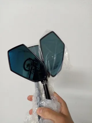 Par de retrovisores homologados de la marca Lightech. Diseño moderno y elegante. - Carcasa negra. - Lente azulada.