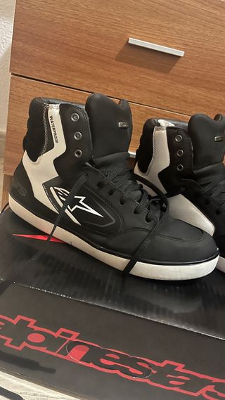 Botines de moto Alpinestars J6, ideales para proteger tus pies en cada ruta. Su diseño combina estilo y seguridad. - Modelo J6. - Tecnología Waterproof. - Cierre con cordones. - Diseño de caña alta. - Tienen poco uso y muy cuidadas desde el dia 1. - Talla 42
