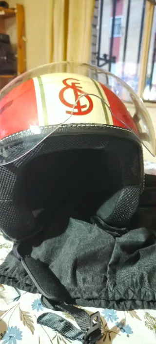 Casco de edición limitada con el escudo del Sevilla FC. Un diseño que combina estilo y pasión por el equipo. - Diseño exclusivo del Sevilla FC. - Visera transparente. - Cierre de seguridad.