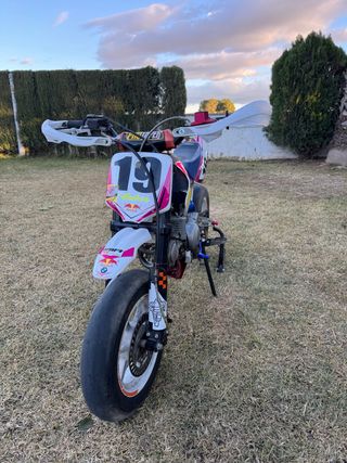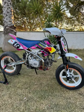 Pik bike IMR de 140cc con diseño deportivo. - El motor esta nuevo recien cambiado, motor marca rebel máster con muy pocas horas. La moto esta muy cuidada, se vende por no darle uso. - Llantas blancas con detalles naranjas. - Guardabarros delantero blanco con pegatinas. - Manillar con protectores blancos. - Asiento bicolor azul y rosa. - Número 19 en el frontal. -Embrague hidráulico. -Moto cuidada al detalle. Acepto cambio por moto de enduro 125cc