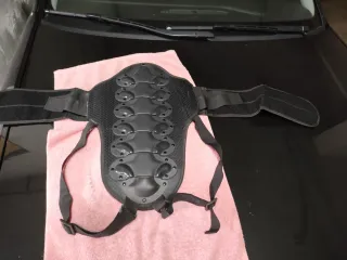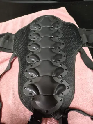 Espaldera protectora para moto, sin estrenar. - Diseño ergonómico para la espalda. - Cierres ajustables de velcro. - Material resistente y flexible.