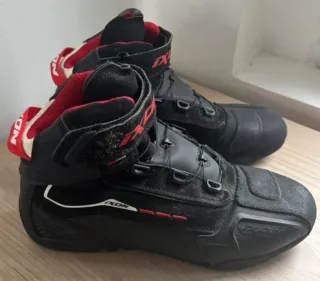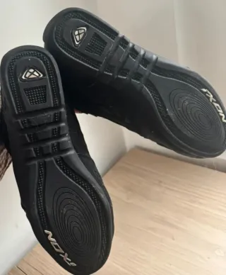 Botas de moto deportivas en color negro, talla 42. - Cierre con cordones y velcro. - Detalle de logo IXON en lateral y puntera. - Forro interior rojo. - Caña alta.