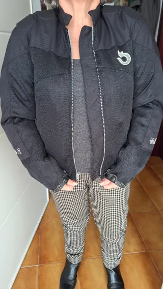 Chaqueta de moto Alpinestars para mujer, diseñada para un estilo deportivo. La chaqueta está nueva, solo la usado una vez. - Talla S. - Color negro con detalles blancos y rojos. - Cierre frontal con cremallera. - Forro interior.