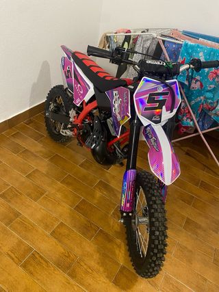 Moto de cross infantil YCF, muy cuidada y con muy poco uso. - Utilizada solo 8 horas. - Diseño deportivo en blanco y azul.