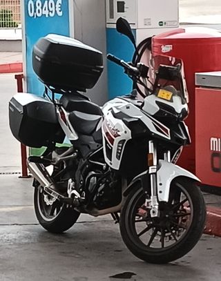Benelli TRK251 como nueva. Duerme en garaje, todas sus revisiones al día. Recién cambiados filtros, revisados filtros y todo funciona a la perfección. Kit de arrastre cambiado. Una gozada para ciudad y carrera con un consumo mínimo. - Moto tipo trail. - Maletas laterales y baúl trasero opcional.