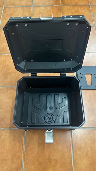 Baúl superior 45l negro para motocicleta ha estado montado en una Triumph tiger 900 pero vale para cualquier modelo Triumph. Diseño robusto y espacioso. - Cierre de seguridad. - Incluye placa de montaje. - 2 llaves. - respaldo pasajero. - kit montaje.