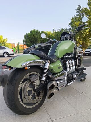 Triumph Rocket III Classic en perfecto estado. Es una moto imponente y llamativa, con un diseño clásico y elegante. - Color verde personalizado con franjas negras. - Motor potente y robusto. - Cromados en excelentes condiciones. - Neumáticos en buen estado. Entrego las piezas originales