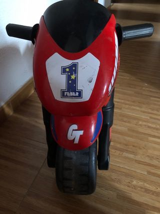 Moto infantil de la marca Feber, modelo GT. Está en buen estado, aunque presenta algunos signos de uso. - Perfecta para que los más pequeños disfruten. - Diseño deportivo y atractivo. - Fabricada en plástico resistente. Obs.: se puede hacercar hasta Atocha.