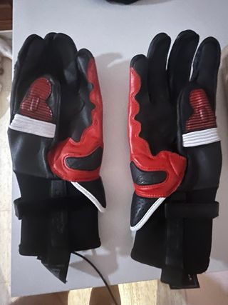 Guantes de moto Alpinestars GPX de piel, prácticamente nuevos. Ideales para conducción deportiva. - Fabricados en piel. - Diseño deportivo en rojo y negro. - Protección en nudillos. - Muy buen estado.