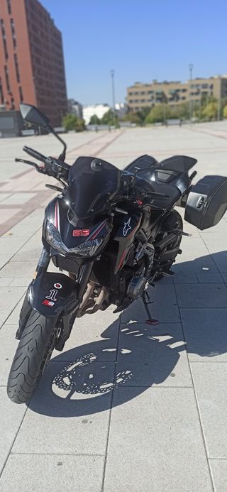Moto Kawasaki Z900 en color negro, 125 CV y 39.700 km de 2019, con un diseño deportivo y moderno. Muy cuidada. Todas las revisiones pasadas en Concesionario Oficial Kawasaki. Dispongo de las 2 Llaves. Con Pegatina Medioambiental "C". ITV válida hasta Octubre 2026 Revisión de los 40 Mil recién Pasada (Adjunto Facturas). - Incluye maletas laterales SHAD (Desmontables con cierres de Seguridad). - Topes Anti-caidas. - Cúpula Alta - Puños Rizoma y Manetas Puig. - Regalo Escape SC-Project + supresor de Catalizador. Cambiaría por Bmw R 1200 GS. Más info. 616416237