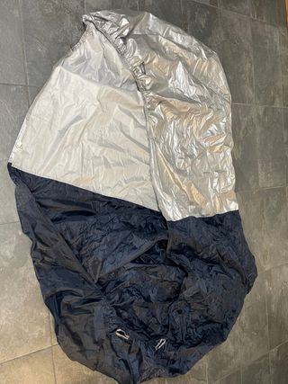 Funda para moto muy cuidada, perfecta para evitar el polvo en garajes comunes.
