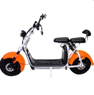 Moto eléctrica estilo Citycoco, ideal para desplazamientos urbanos. - Diseño moderno y llamativo. - Asiento cómodo para el conductor y asiento trasero. - Ruedas anchas para mayor estabilidad. - Batería de recambio. - Bluetooth incorporado. - Doble suspensión