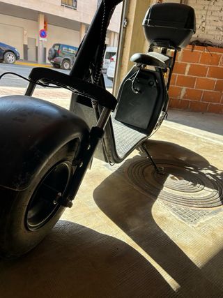Scooter eléctrico Citycoco estilo Harley con matrícula amarilla, en perfecto estado. Usada solo dos veces. - Diseño elegante y moderno. - Color negro mate. - Ideal para ciudad. Agradable de conducir. Muy estable. - Primera ITV pasada. La próxima le toca dentro de 2 años.