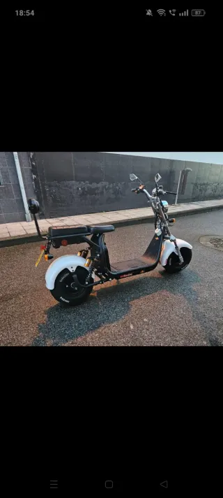 Vendo Citycoco en Perfecto Estado Matriculado y con todos los Papeles en Regla con solo 373 Km Bateria Ampliada a 35Ah para Mayor Autonomia Citycoco scooter eléctrica en color blanco. Diseño moderno y cómodo para desplazamientos urbanos. Tambien Aceptaria Cambio Por Coche Pequeño - Ruedas anchas para mayor estabilidad. - Asiento doble. - Faro delantero redondo. - Intermitentes naranjas.