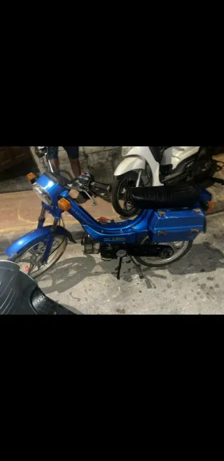 Moto clásica estilo cross con caja de cambios manual. Ideal para coleccionistas o entusiastas. Es de 50esta muy bien cuidada siempre a dormido en garaje, mejor verla solo en persona para más información marque sobre el número de teléfono 699913051 - Asiento negro. - Guardabarros delantero y trasero azul. - Depósito de combustible naranja. Puede ser un poco negociable