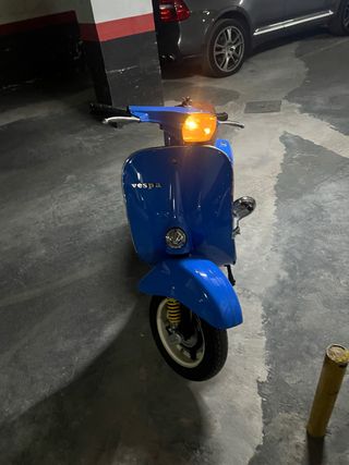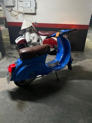 Vespa clasica azul marino en muy buen estado Vendo Vespa, cuidada y siempre guardada en garaje. Funciona perfectamente, motor suave y sin problemas mecánicos. Ideal para moverse por la ciudad con estilo y comodidad. 🔹 Estado: Muy bueno (solo un pequeño arañazo estético en el baul y lateral izquierdo, se muestra en la foto) 🔹 Defecto: Cable del velocímetro averiado desde septiembre, fácil y económico de reparar 🔹 Mantenimiento: Al día, revisiones hechas regularmente 🔹 Uso: Muy poco uso, kilómetros reales. 43.700 aprox 🔹 ITV: Pasada recientemente Lista para disfrutar. ¡Una auténtica joya clásica que no pasa de moda! ✨