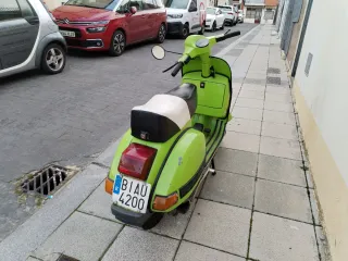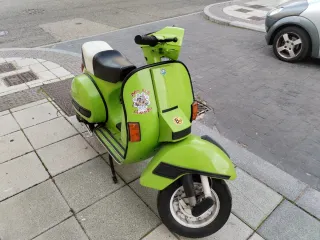 Vespa P200 del año 1983. Un clásico en color negro. - Modelo P200. - Transmisión manual. - Estilo scooter. Dedmontada entera para pintar bordón del escudo nuevo tulipas intermitentes nuevas sin montar tacos del caballete nuevos sin montar encendido Ducati que es el bueno cables del cambio nuevo y ajustados cerraduras nuevas Gomas del escudo nuevas bote de mezcla de aceite original Godas nuevas perfectísimo estado. Sin itv por no usarse aunque se arranca periódicamente punto se podría negociar entrega con ITV y también el transporte a península ajustando precio