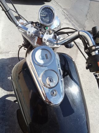 Moto custom en color naranja y plata, con un diseño clásico y elegante. 250cc - Asiento doble. - Maletas laterales naranjas. - Respaldo para el pasajero. 8000km del 2013. Recién pasada ITV, Favorable para 2 años.Bateria nueva 657589675.Solo interesados.