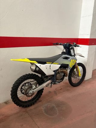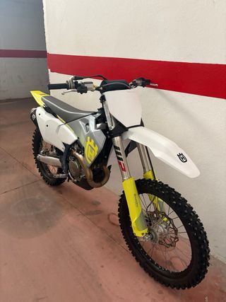 Motocross Husqvarna 450 del año 2024 con 20 horas de uso. Diseño moderno y llamativo en blanco y amarillo. - Modelo: Husqvarna 450 - Año: 2024 - Dos mapas de conducción - Control de traccion y Quickshifter - Colores: Blanco y amarillo ‼️Escucho cambios‼️