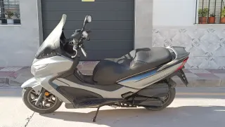Maxi scooter de dos plazas con un diseño deportivo y moderno. Ideal para desplazamientos urbanos y rutas. - Asiento doble acolchado. - Cúpula alta para mayor protección. - Amplio espacio de almacenamiento bajo el asiento. -escape mivv -puños calefactables -arranque sin llave -baul givi Kms 32.000