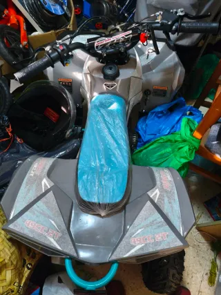 Quad LF125ST con motor de 125cc. - Diseño deportivo. - Neumáticos todoterreno. Traseros recién cambiados. - 9.500 kms - Año matriculación 2006 - Gasolina - Potencia fiscal 1,44 CV - ITV en vigor hasta Septiembre del 2026. Incluye maletero y 2 cascos (M y S). - Asiento trasero para otra persona. - Funciona muy bien, sería conveniente ajustar un poco la cadena. - Vendo por darle poco uso dadas mis circunstancias personales. No aseguro el quad. Actualmente se encuentra con seguro en vigor y el comprador habrá de hacerse caso de asegurarlo y del costes del traspaso. Precio algo negociable si tu argumento es razonable.