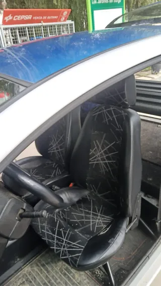 Vehículo sin necesidad de carnet de conducir. - Color azul. - Puerta del conductor abierta. - Techo gris.