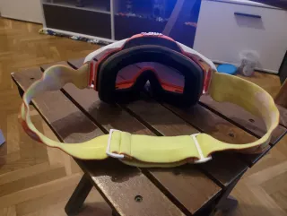 Gafas de motocross de la marca 100%. - Color naranja y blanco. - Correa con diseño de la marca.