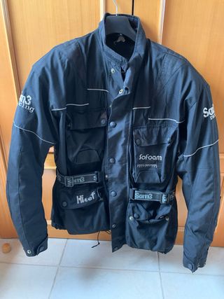 Precio por unidad. Talla M las dos La primera es una Chaqueta de moto Ixs de color negro, con detalles reflectantes y tejido de malla. La segunda comprada también en una tienda local profesional de motos. - Cierre de cremallera frontal. - Dos bolsillos con cremallera en la parte delantera. - Cuello alto con cierre de velcro. Características de alto rendimiento, confort y protección. Materiales resistentes a la abrasión. Protectores acoplados. Costaron cada una 140 euros en tienda de moto profesional. Las vendo sin usar, no llegué a comprame moto. Envio rápido en el mismo dia